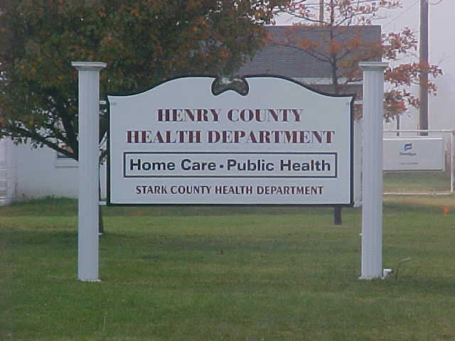 Henry County Health Department Alumalite sign with vinyl lettering & aluminum pillars to match the architecture of the building