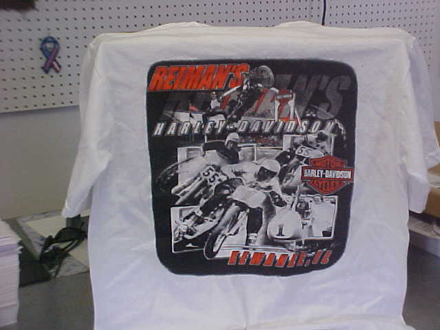 Reiman's Screen printed tee - Another 3-D appearance with the use of shading with half-tone dots Only a two-color print with the look of multi-color art
