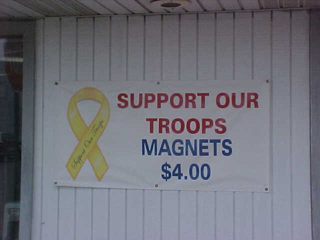 Support Our Troops Ribbon Banner Digitally printed decals & banner vinyl on 2' x 4' 10 oz. banner with grommets